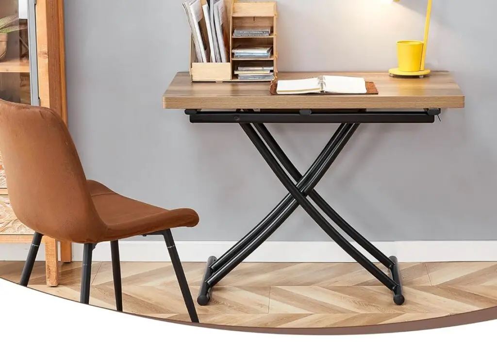 Its heavy weight (55lbs) means that it doesn’t wobble or feel flimsy when in use. This elevated folding table can be used as a dining table, coffee table and desk.